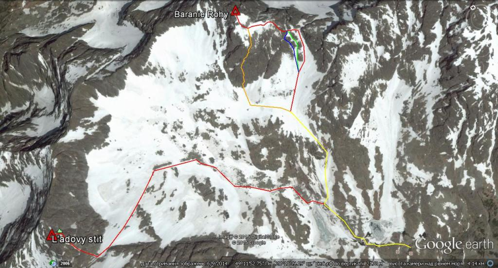 в Малій Студеній Долині 1 маршрут на Лядовий щит та 4 маршрути на Бараніє Роги.