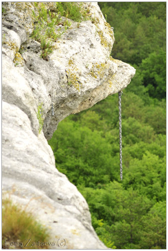 І нікого довкола. Надії зустріти активістів, що бредуть до скель, розмило дощем, значить, шукати «пробиті» скелі, доведеться самим. Справа в тому, що урвищ, обривників і нависань там вистачає, але де потрібні? Знайшовши спуск униз і «запірнувши» під найближчий урвищ праворуч, ми спочатку натрапили на пташині колонії, майже без слідів перебування людини.